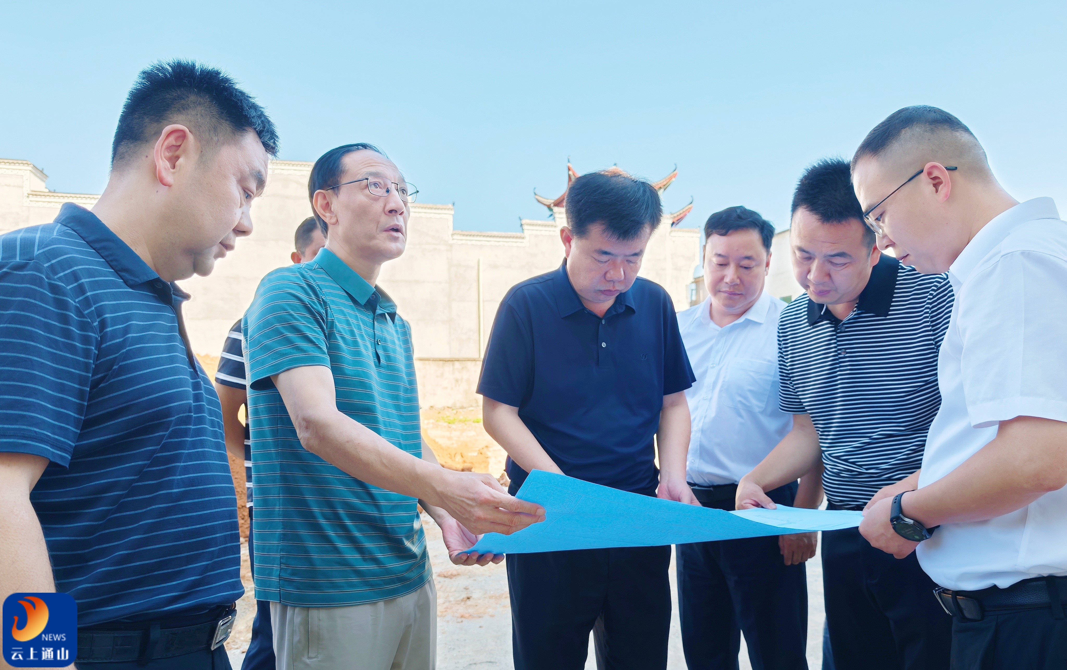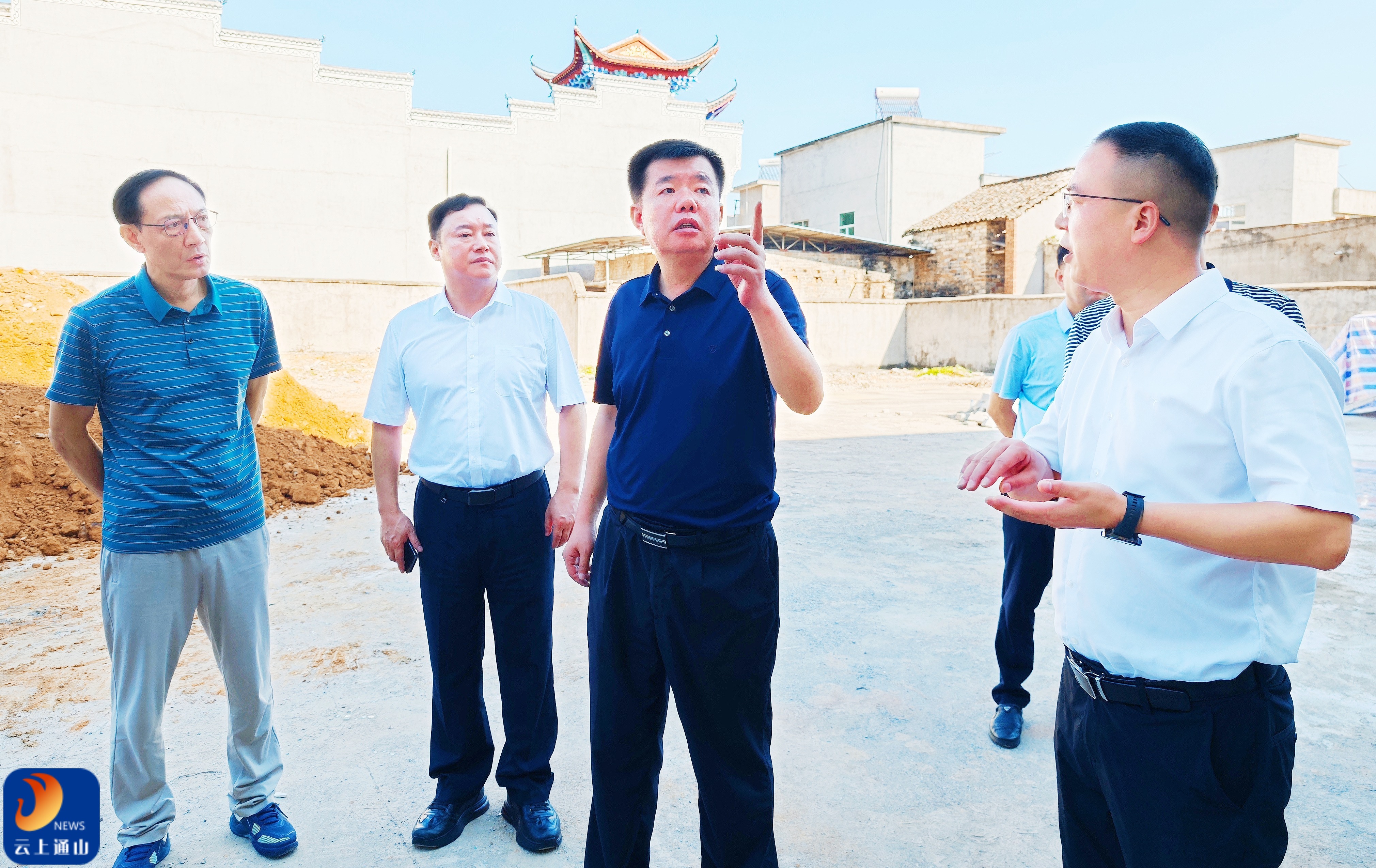 ▲吴涛实地查看大路乡青少年成长学校项目建设现场。