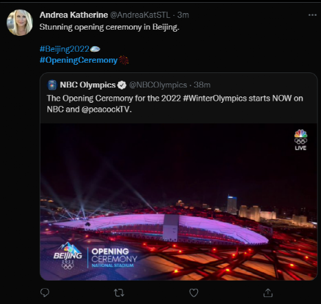 有美国网友言简意赅表示:“在北京,让人惊叹的开幕式。”↓