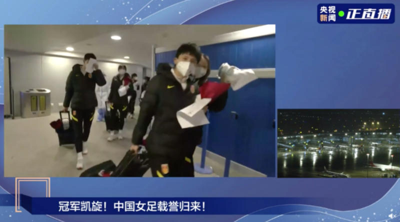 昨晚,夺得2022女足亚洲杯冠军的中国国家女子足球队一行乘坐东航MU7118航班从印度孟买飞抵上海浦东国际机场。塔台喊话:“欢迎中国女足凯旋!”