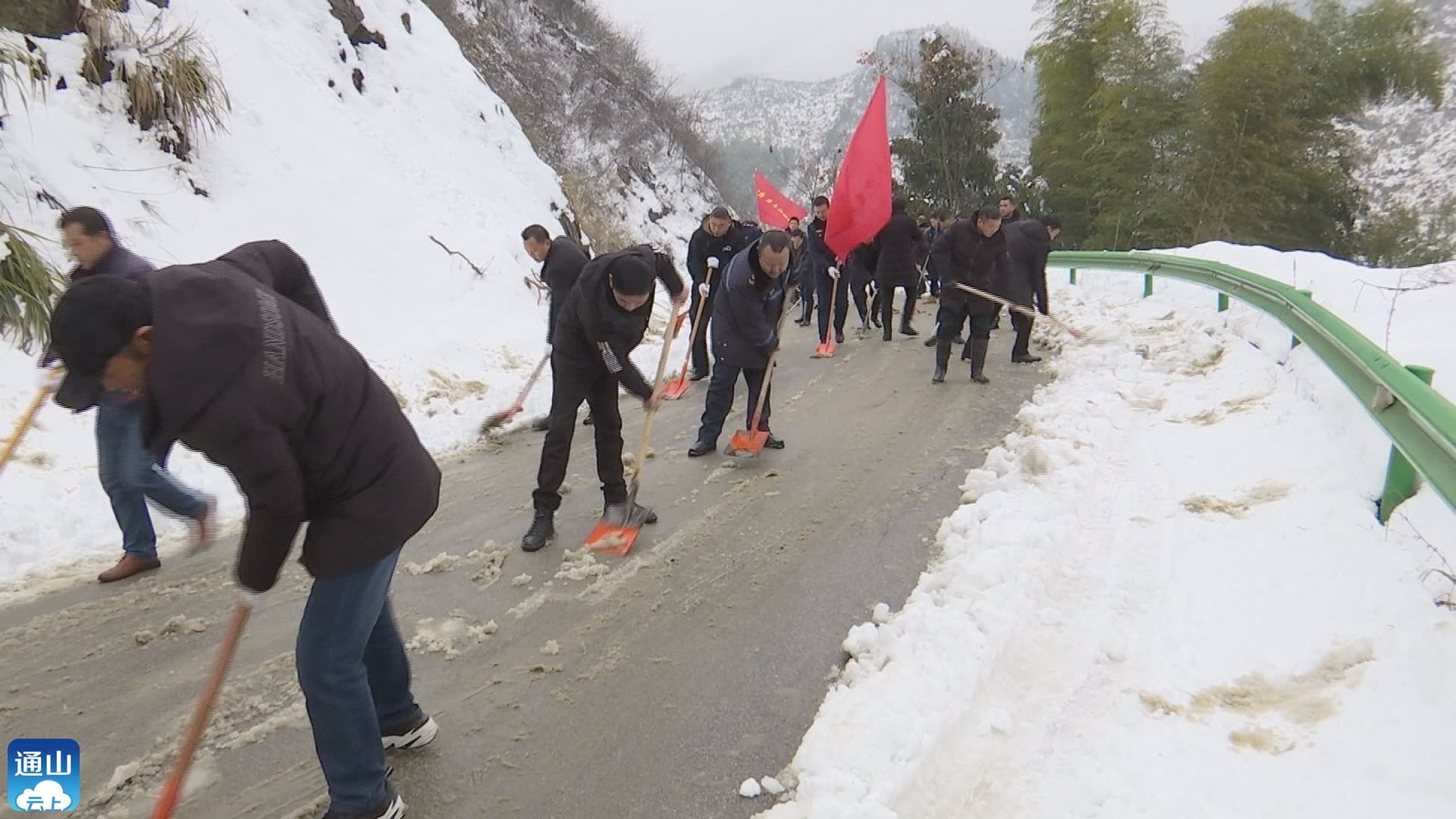 云上通山报道:(全媒体记者 谭袁飞)近日,通山县突降大雪,为确保道路畅通,保障居民出行安全,2月8日,县交通运输局组织干部职工到黄沙铺镇九折湾路段开展清雪除冰活动,有效降低道路湿滑、积雪和结冰对交通运输安全产生的不利影响。