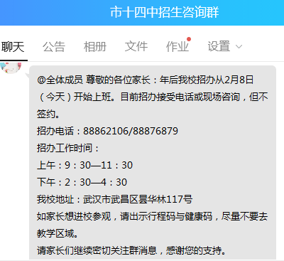 据了解,武汉四中从2月6日起即可接受家长咨询。