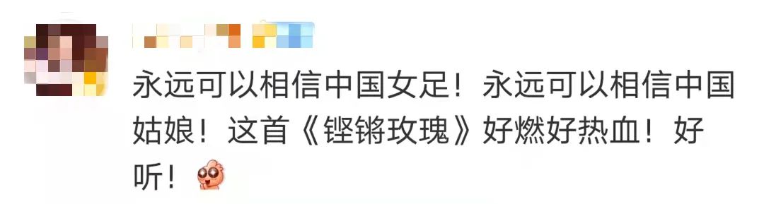 对于今天这一代女足姑娘们来说,几乎都是从小听着这首歌长大的。“铿锵玫瑰”的称号是属于老一辈的中国女足,现任中国女足主帅水庆霞正是那一代的球员。