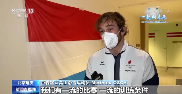 卢森堡队高山滑雪运动员 Matthieu OSCH:这是我第一次来中国,我们有一流的比赛,一流的训练条件,这让我幸福满满,可惜不能待更久些。我在这里交换徽章,我们收集了很多不同的徽章,像硬币等等各种形状的,我有很多徽章,我把这些带回家,它们会时常让我想起中国。