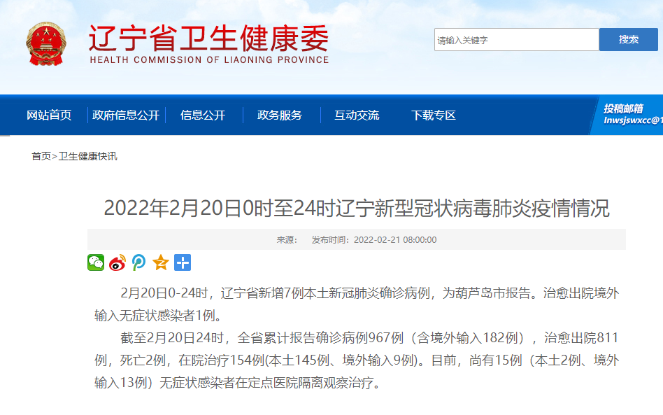2022年2月20日0时至24时辽宁新型冠状病毒肺炎疫情情况