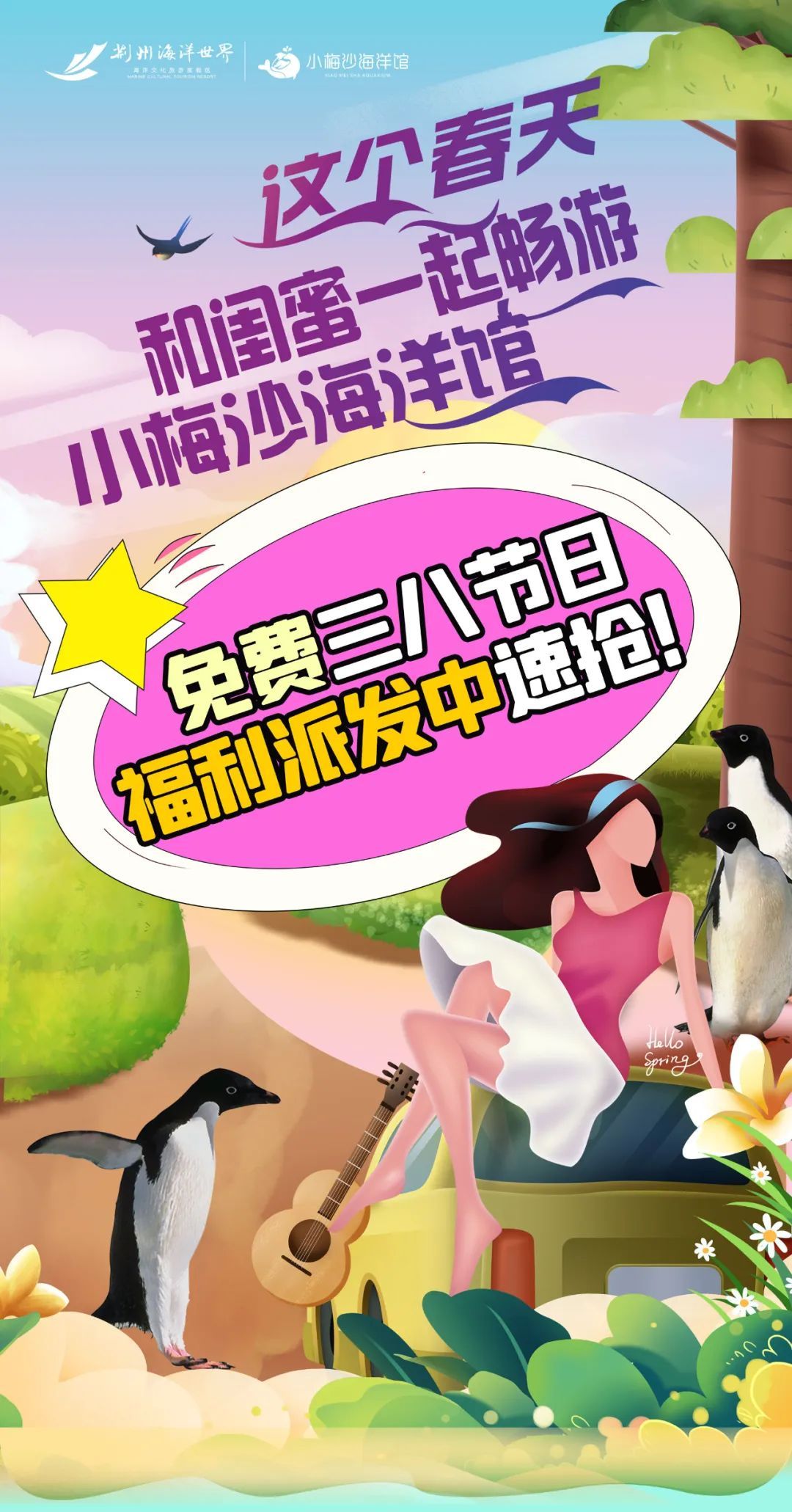 活动内容:3月8日1.4米以上女性游客凭预约及证件免费入馆。预约平台为荆州小梅沙海洋馆公众号,3月1日-7日开启预约,不定时放票,需持续关注。预约成功后,名额仅限本人使用,不可转让不可退换,可携带1米(不含)以下儿童入馆。另外3月1日-31日,可在荆州小梅沙海洋馆公众号购买“闺蜜”专属团购票,3人以上游客(不限男女)可享受118元/人,但需同时入馆,不支持分批次入馆。
