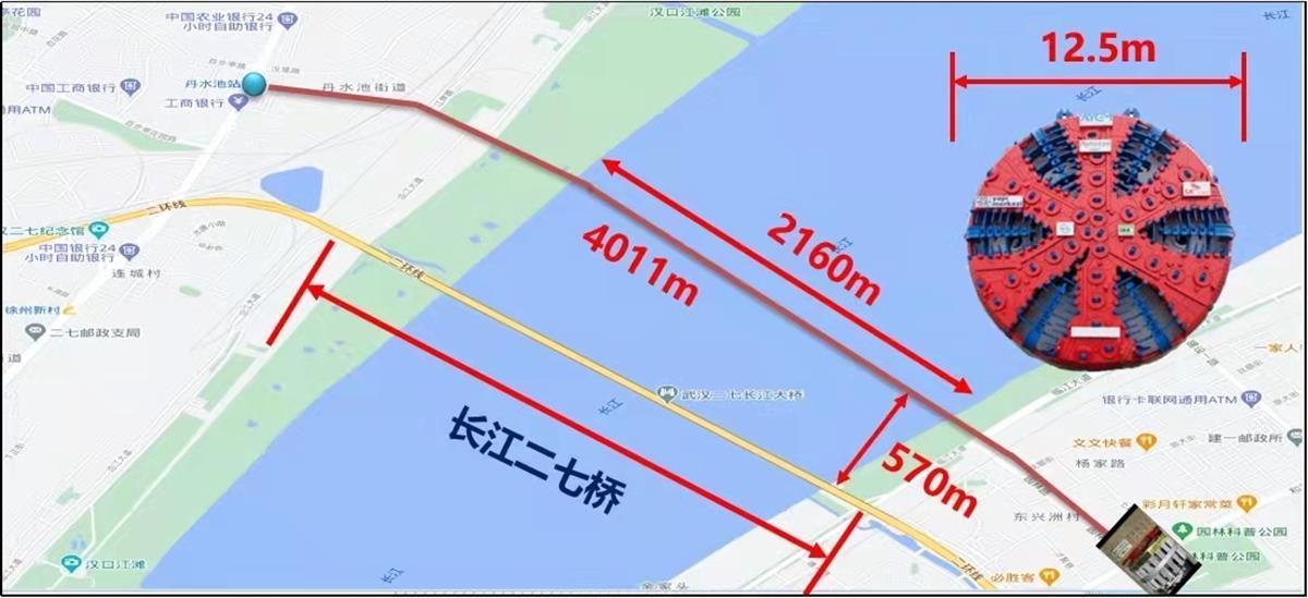 据介绍,该隧道为单洞双线隧道,长4011米,盾构机开挖直径12.55米,区间最大埋深45.5米。届时,盾构机自青山区科普公园站始发,依次下穿园林路、武昌江堤、长江航道、汉口江堤、京广铁路货场支线、京广铁路、汉宜高速铁路、丹南社区,到达丹水池站接收,下穿越长江地点为长江二七桥下游约570米处。