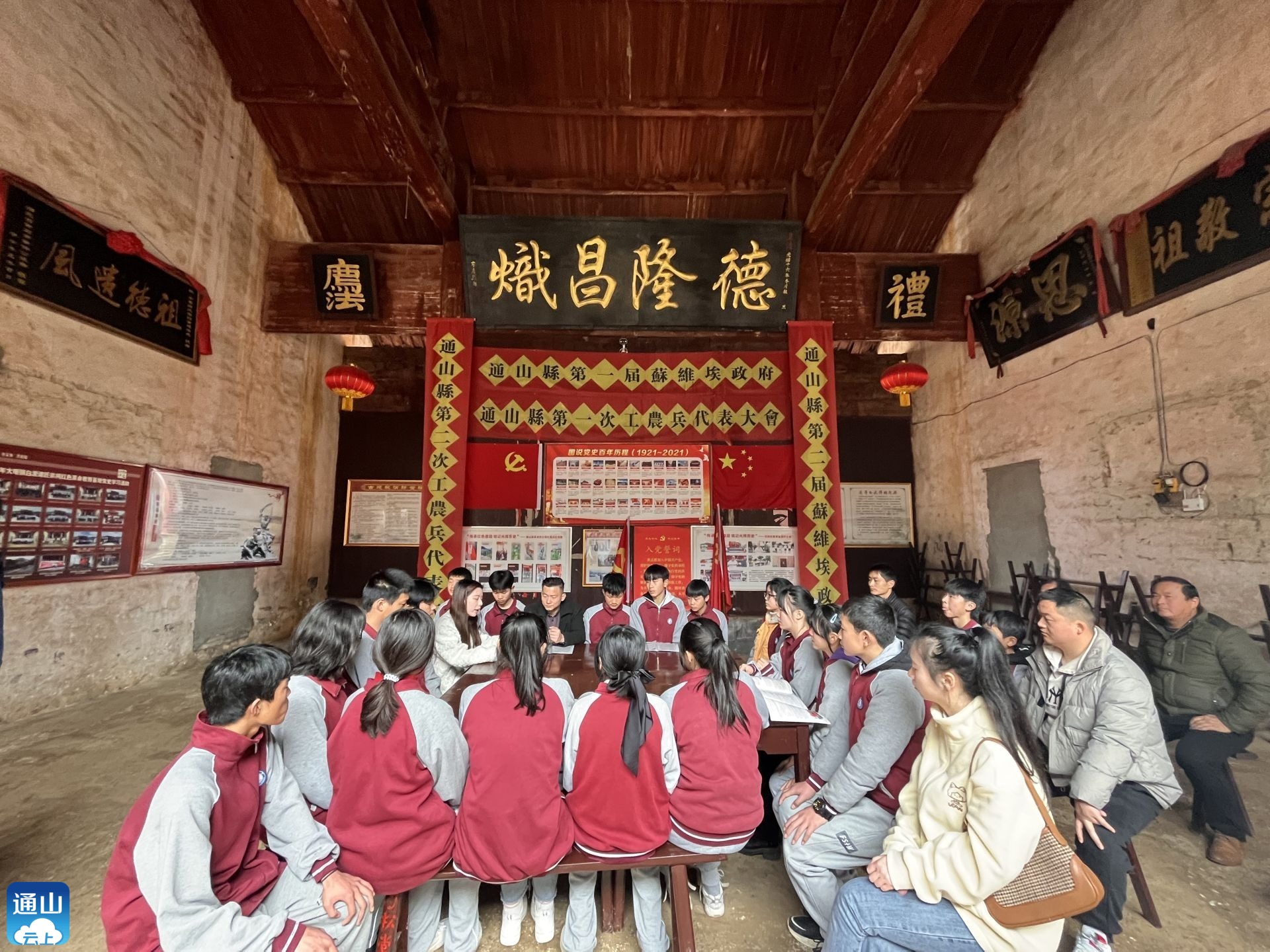 在大畈镇白泥村,学校师生一同瞻仰了革命烈士纪念碑,参观了通山县苏维埃政府所在地、红三师司令部旧址——谭氏宗祠,并现场讲授了一堂生动的历史课。一位位烈士,一件件感人事迹,让学生们更加了解了革命先烈抛头颅洒热血的无私奉献精神。