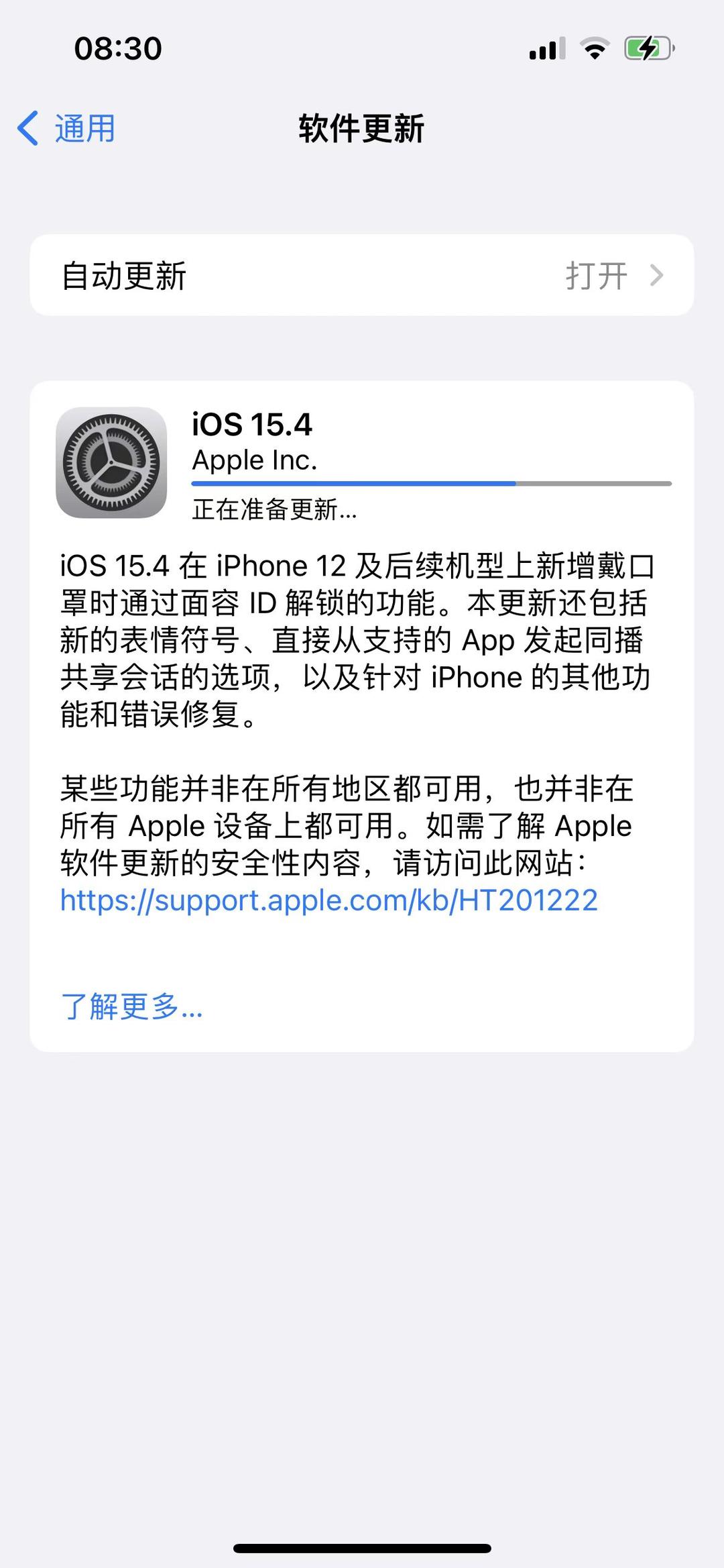 苹果iPhone戴口罩可解锁来了。3月15日,苹果凌晨推送了 iOS / iPadOS 15.4 正式版更新,这次更新带来一个重大功能是支持戴口罩Face ID解锁功能。