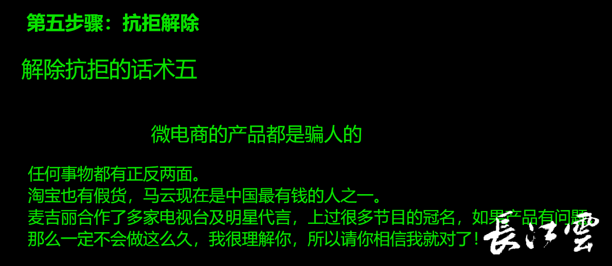 微电商的产品都是骗人的?课件解除抗拒的话术中提到:“淘宝也有假货,马云现在是中国最有钱的人之一。麦吉丽合作了多家电视台及明星代言,上过很多节目的冠名,如果产品有问题,那么一定不会做这么久,我很理解你,所以请你相信我就对了!”。