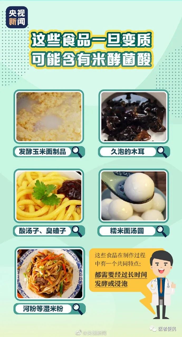 据了解,米酵菌酸是椰毒假单胞菌酵米面亚种产生的一种可以引起食物中毒的毒素。可造成肝、脑、肾等器官受损。米酵菌酸耐热,一般烹调方法不能破坏其毒性。椰毒假单胞菌酵米面亚种食物中毒多发生在夏、秋季节,潮湿、阴雨的天气,椰毒假单胞菌在食物中大量地生长繁殖,椰毒假单胞菌产生米酵菌酸,吃了含米酵菌酸的食物会发生中毒。