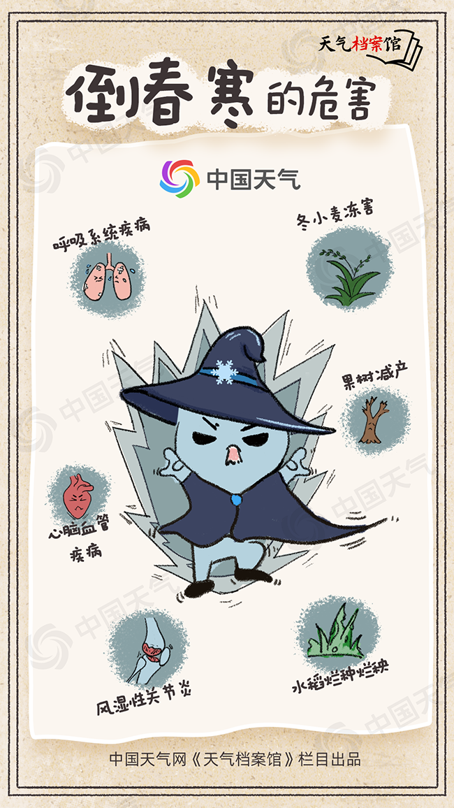 不仅农作物是我的“攻击对象”,人体健康也会因我而受到损害。天气转暖后,人体自身免疫力较冬天会有所下降,这时如果再碰上我的魔法攻击,气温骤降,很容易生病。假如对我防范不到位,呼吸系统疾病、心脑血管疾病等都会找上门来。