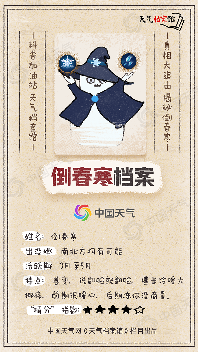 春季正是我国由冬季风转变为夏季风的过渡时期,这期间,南下的冷空气仍然活跃并与南方的暖湿空气对峙较量,气温起伏较大。当冷空气南下时间越晚、强度越强、降温范围越广时,我的势力地盘也会相应扩张。所以大家要算账的话,这笔账一定要算到冷空气头上。