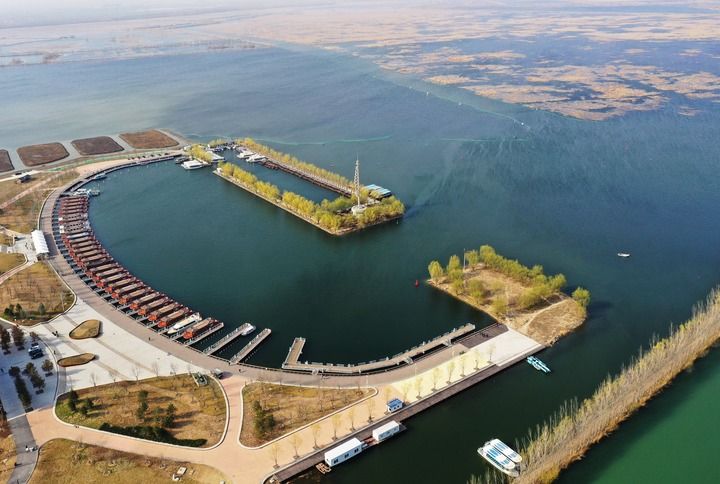 这是3月28日拍摄的雄安新区白洋淀旅游码头(无人机照片)。新华社记者 朱旭东 摄