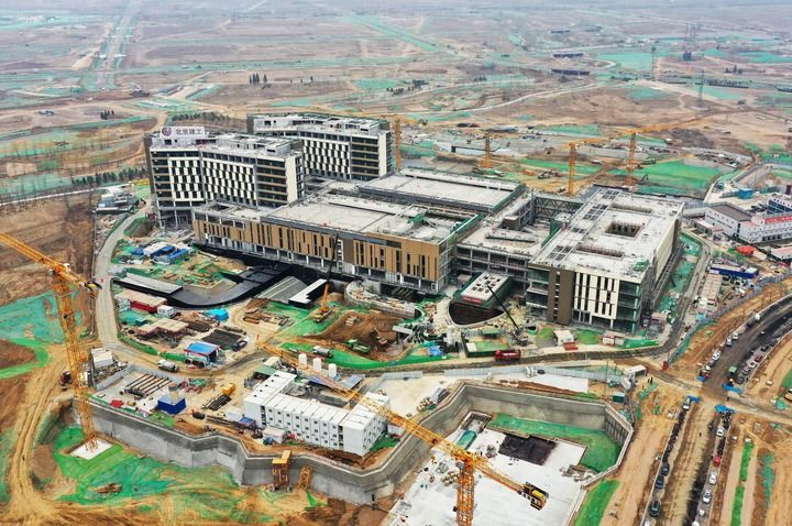 这是3月29日拍摄的雄安新区首都医科大学宣武医院雄安院区项目建设施工现场(无人机照片)。新华社记者 朱旭东 摄