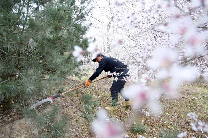 工作人员在雄安新区千年秀林修剪树木(3月29日摄)。新华社记者 骆学峰 摄
