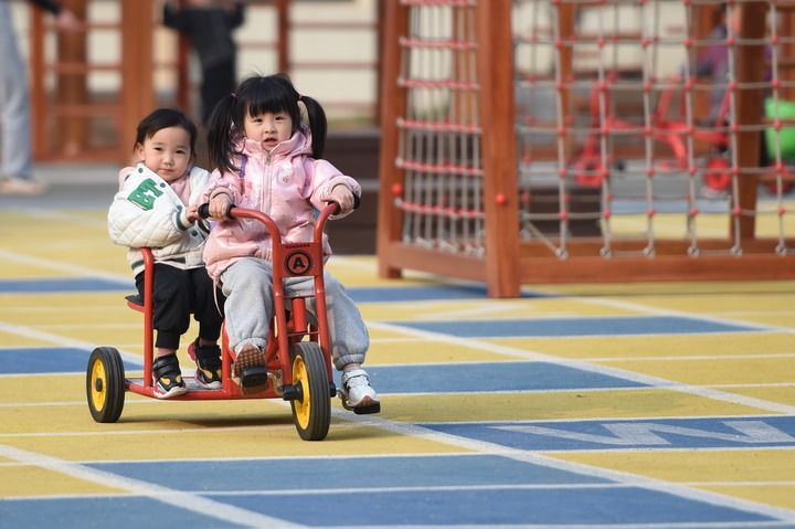 小朋友在雄安容和双文幼儿园玩耍(3月23日摄)。新华社记者 骆学峰 摄