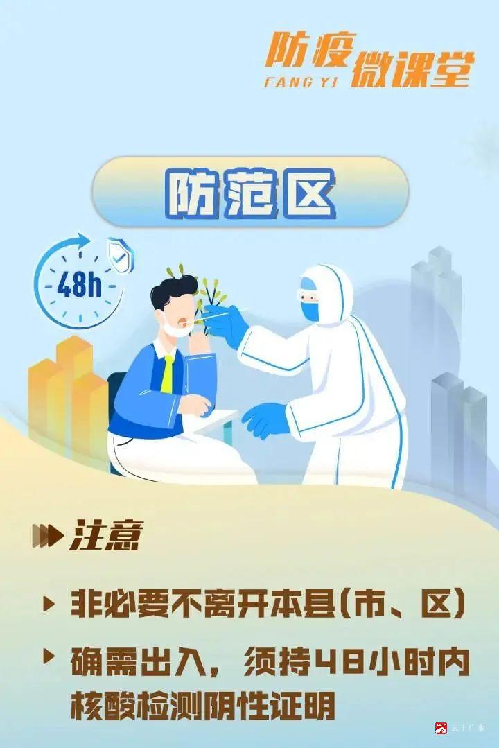 封控区划定范围为病例和无症状感染者居住小区或活动频繁的周边区域,实行“区域封闭、足不出户、服务上门”管理。管控区划定范围为病例发病前2天或无症状感染者检测阳性前2天到隔离管理前,其工作、活动地等区域,实行“人不出区、严禁聚集”管理。防范区划定范围为县(区)内封控区、管控区以外的区域,实行“强化社会面管控,严格限制人员聚集”管理。还是不太清楚?