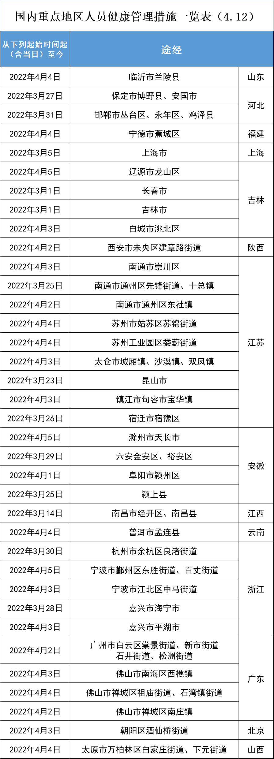三、有下图所示地区旅居史的来(返)咸人员,集中隔离医学观察至离开当地满14天。