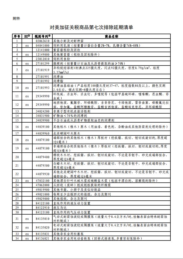 国务院关税税则委员会关于对美加征关税商品第七次排除延期清单的公告