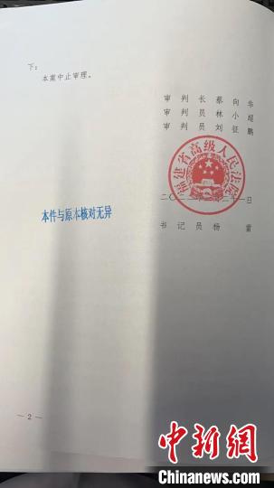 福建省高级人民法院于2022年3月21日下发的刑事裁定书 受访者供图