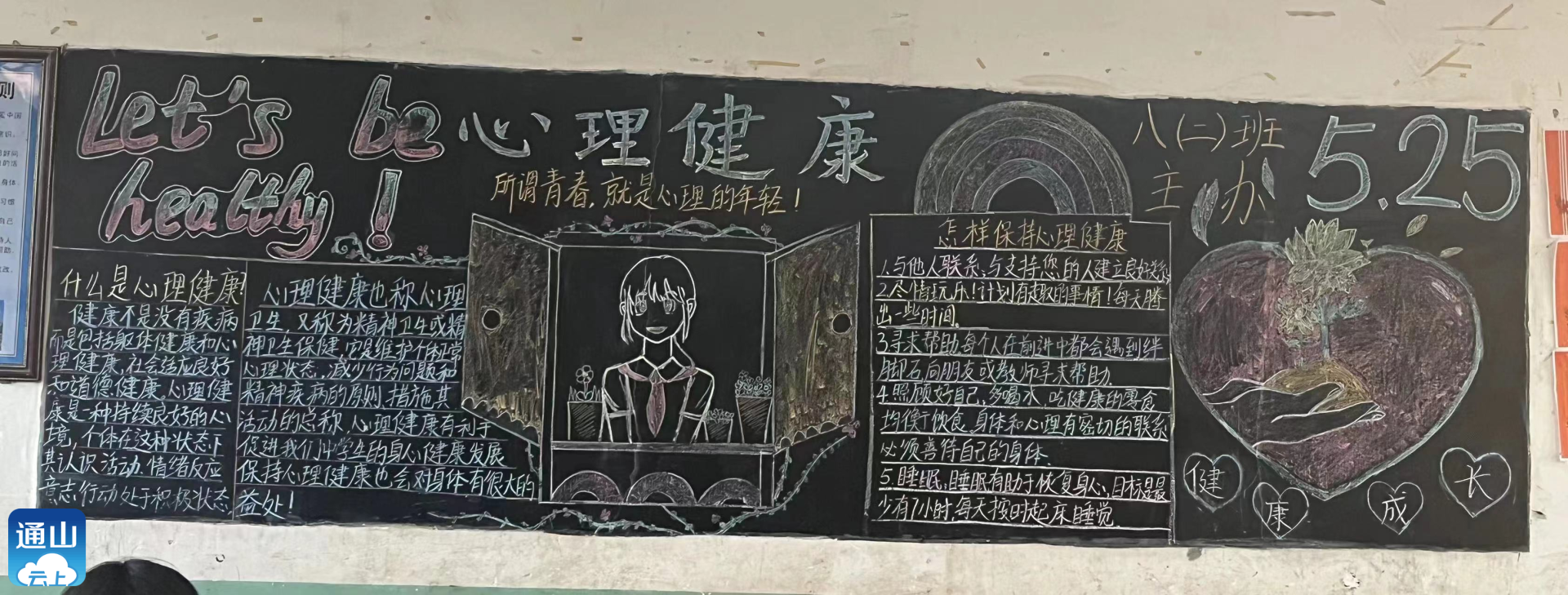 这次活动由政教处组织进行,上周政教处就定出了黑板报主题:七年级——预防溺水,八年级——心理健康,九年级——遵法守法。然后各班团支部领了任务后就紧锣密鼓地进行了。今天下午政教处组织评委对各班的黑板报进行了客观公正的评分。八(2)班、七(1)班、七(2)班分获这次比赛的前三名。