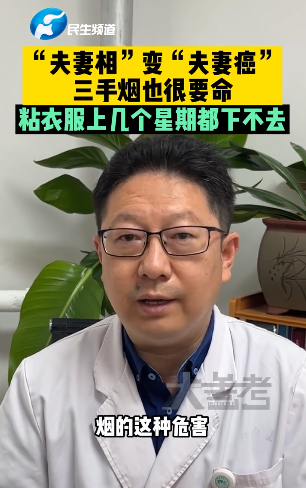 医生介绍,相对于二手烟,三手烟的危害更大更持久。“三手烟”是烟民"吞云吐雾"后残留在衣服、墙壁、地毯、家具甚至头发和皮肤等表面的烟草烟残留物,几个星期都去不掉,从而对家人的健康危害也是长效性的。