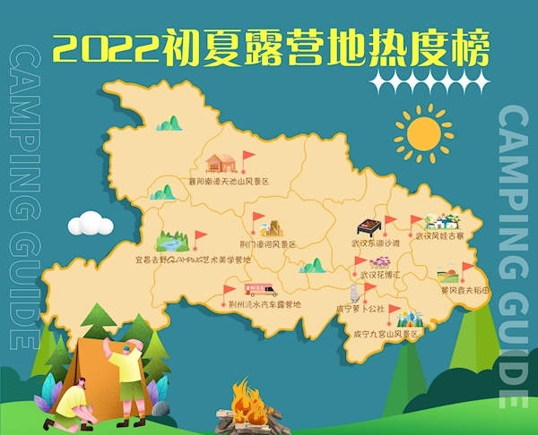 我省有哪些特色露营地呢?昨日,“湖北旅游排行榜”之“2022初夏露营地热度榜”公布,10个热门露营地上榜,让你把露营玩明白。