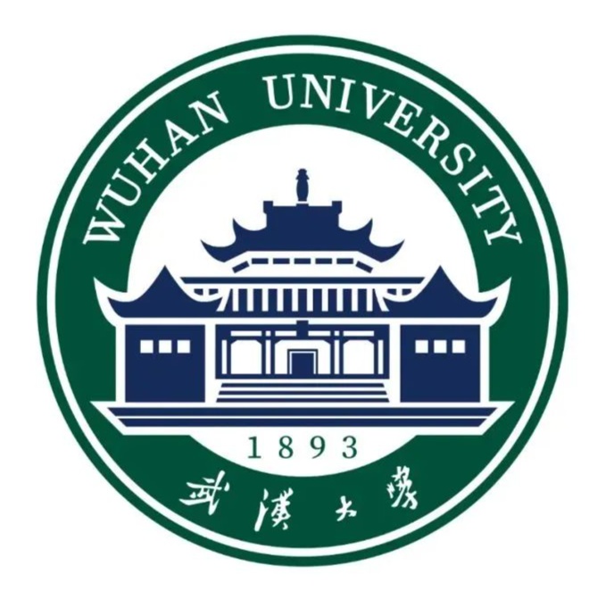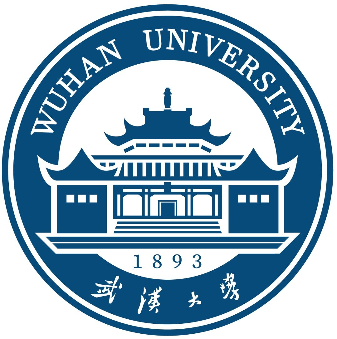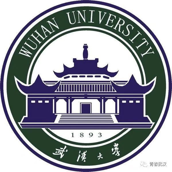 现行武汉大学校徽为1993年庆祝百年校庆时设计的图案。校徽图式为圆形,上方为武汉大学英文校名,呈弧形,表达学校国际化办学理念和成为国际一流大学的奋斗目标与价值追求;中居学校老图书馆造形,表达学校独有地标特征和文化标志;中间下书阿拉伯数字“1893”,表明学校建校年代;下方为中文汉字毛体校名。