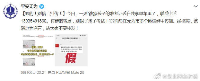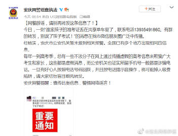 经警方证实,此则消息为不实信息。据安庆网警巡查执法 ,每年高考季,总有一些不法分子传播虚假信息来欺骗考生和家长,而公安机关也证实所留手机号一般都是诈骗电话。一旦有好心人按照电话号码回拨,并且按电话提示音操作,就可能掉入吸费陷阱。