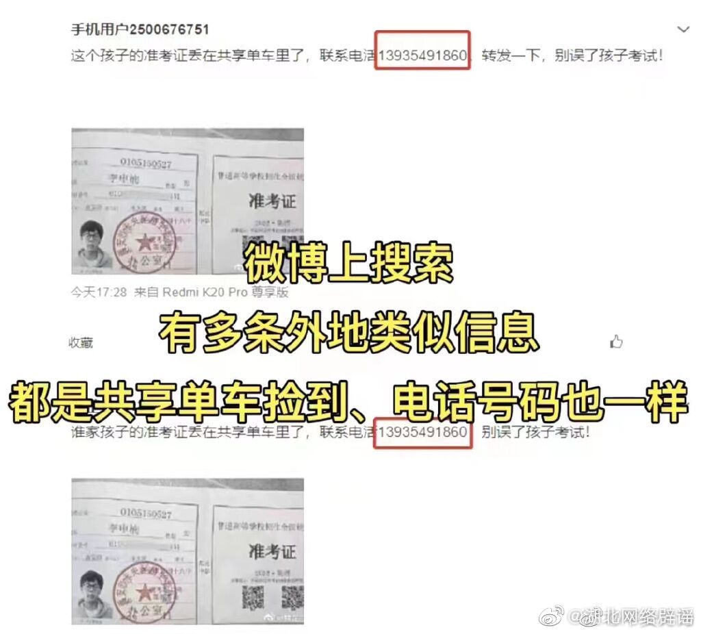 高考临近,谁家孩子准考证丢在了共享单车上了?“有群的转发!”“别耽误孩子考试”…近日,一则疑似高考准考证遗失求助的消息在各大微信群流传,引起网友关注。