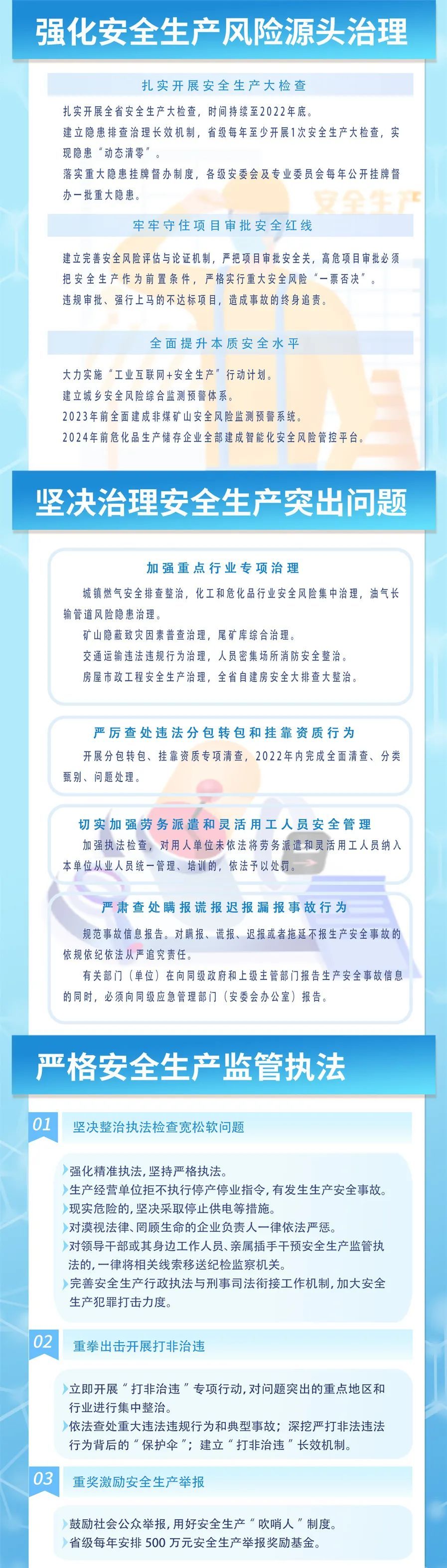 比如,在严厉查处违法分包转包和挂靠资质行为方面,明确由市(州)、县(市、区)政府统筹,开展专项清查,2022年内完成全面清查、分类甄别、问题处理,还提出制定工程业务分包转包和资质使用负面清单。在加强劳务派遣和灵活用工人员安全管理方面,提出强化建筑施工、矿山等行业工人实名制管理,运用平台大数据筛查等手段,及时锁定重点监管企业(单位)。