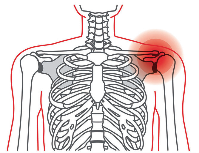 还有一类不常见的肩周炎——肩锁关节炎,肩锁关节炎则多发生在一些长期托举重物的劳动者或者肩顶部受过剧烈冲撞的运动员身上。若发生肩锁关节炎,可用手沿着锁骨向肩膀的方向摸索,在肩膀的外上方肩锁关节处就能发现明显的压痛点。