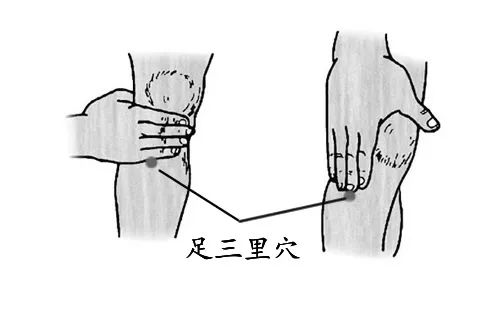 重按足三里:足三里穴位于小腿外侧,外膝眼下四横指,用拇指指腹按揉50次,力量稍重,有明显酸胀感,可以起到调理脾胃、补中益气、扶正祛邪的作用。