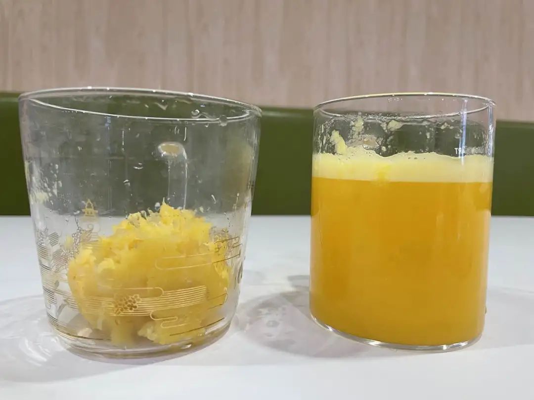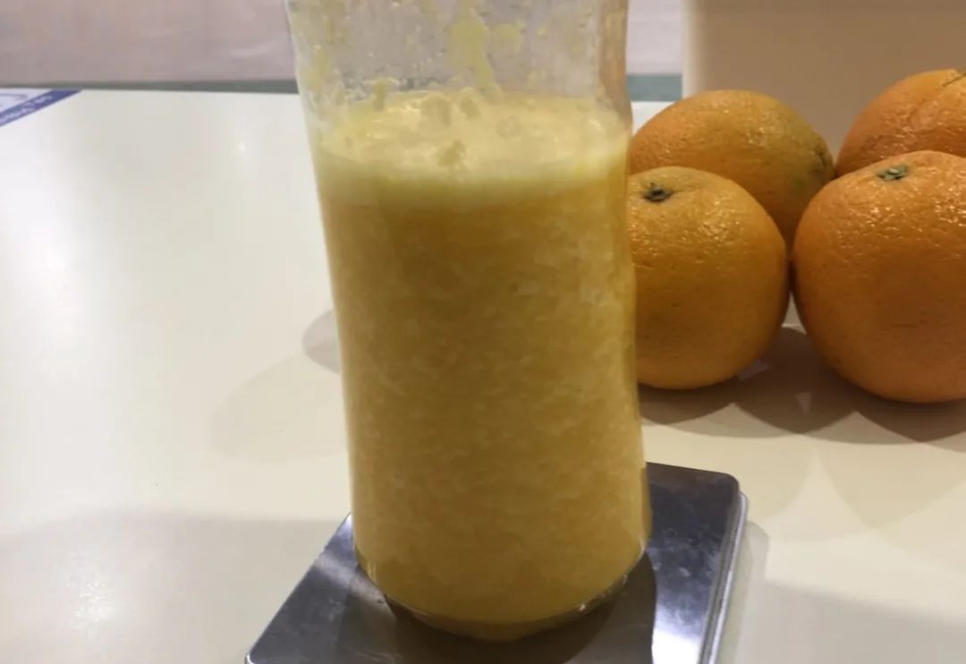 第三轮橙子试验:两个橙子榨汁,带渣喝下去。