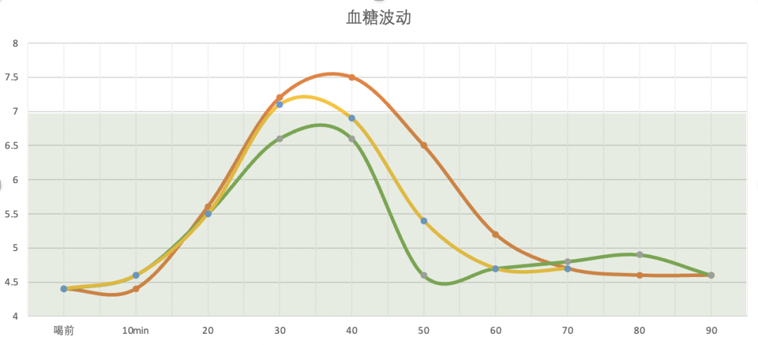 先放一下血糖变化的结果……真的,不一样!(大家可以猜猜三条曲线,分别是什么)