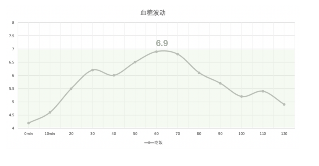 先给大家一个参考,这是阿官平时正常吃一顿饭的血糖变化。波动表明,工具人阿官,是个血糖调控正常的合格工具人。