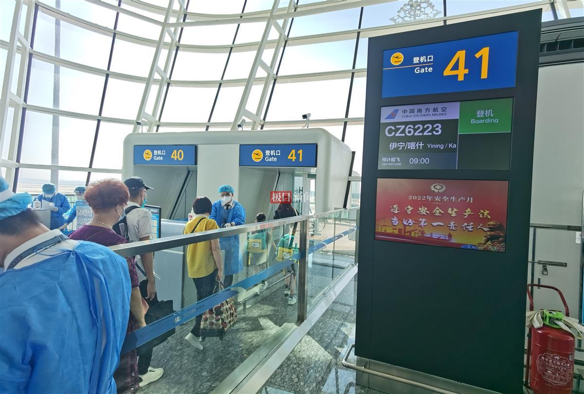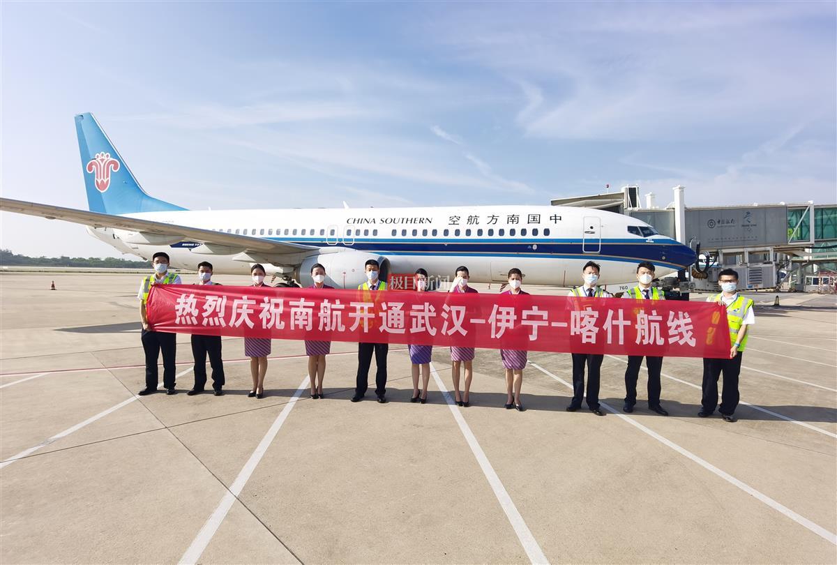 7月1日9时3分,南航CZ6223航班搭载着125名旅客从武汉天河国际机场顺利起飞,经停伊犁哈萨克自治州伊宁机场后,飞往喀什国际机场,标志着武汉-伊宁-喀什航线正式开通。