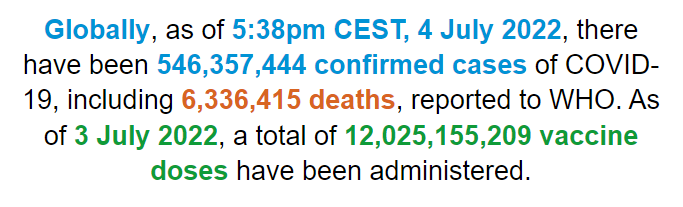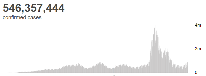 世界卫生组织4日公布的最新数据显示,全球累计新冠确诊病例达546357444例。