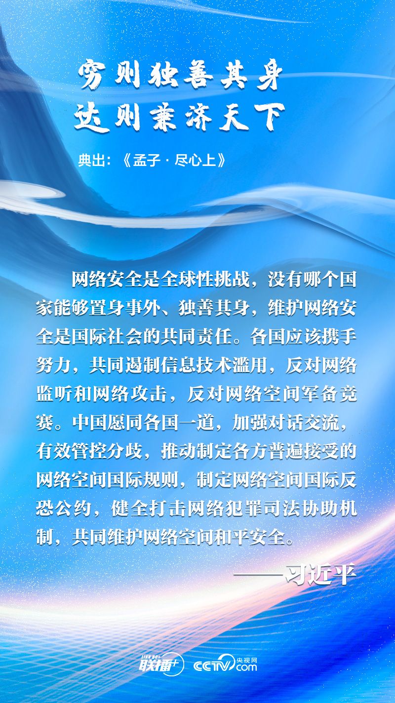 党的十八大以来,习近平主席倡导构建网络空间命运共同体,并多次引经据典阐释这一理念。央视网《联播+》栏目特梳理相关内容,与您一起感受用典的历史高度和深刻内涵。