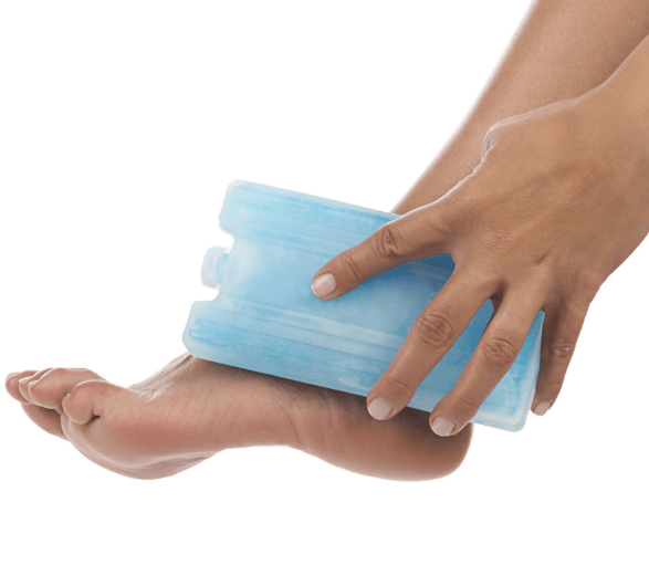 在冰敷之前要在踝关节上方铺上一块毛巾,主要是为了防止冻伤,再将冰袋放置在毛巾上进行冰敷,这样可以多角度充分贴附各个关节面,达到冰敷的效果。同时,也要注意冰敷的时间,一般来说一次冰敷20~30分钟,可以间隔半个小时再冰敷一次。