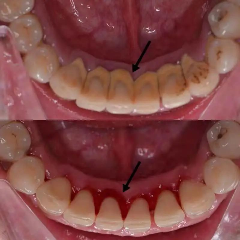 牙结石压迫导致牙龈萎缩、牙槽骨吸收