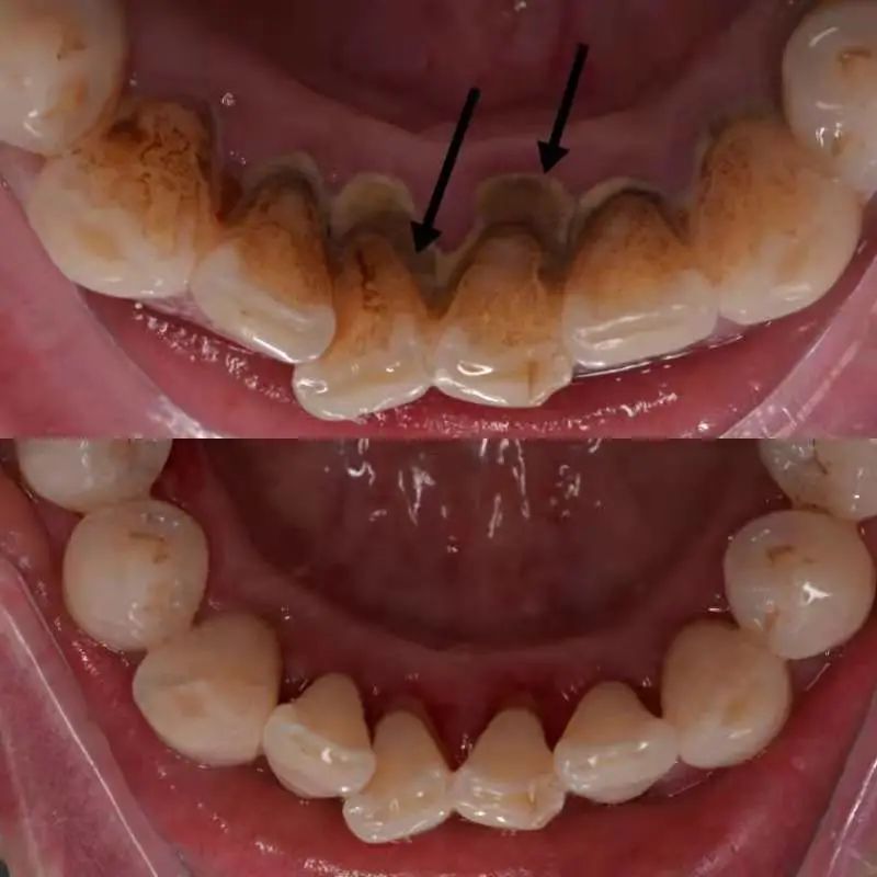 (洗牙将烟斑清除干净。作者供图)