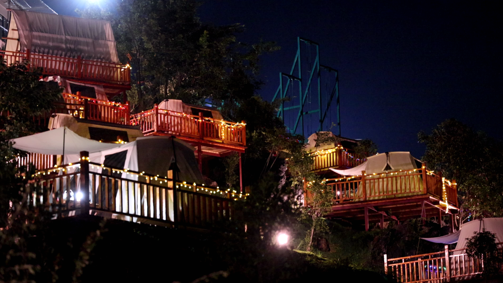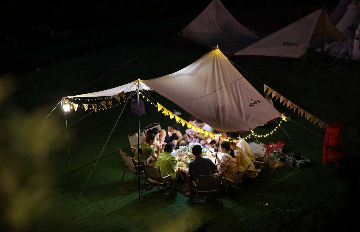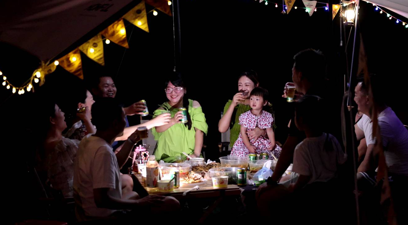 游客:今天刚好是我的一些闺蜜、朋友一起,趁着这个暑假带着孩子一起到这边来,进行一个露营。这里到了晚上就像天然的空调一样,这种冷风吹得人特别舒服。