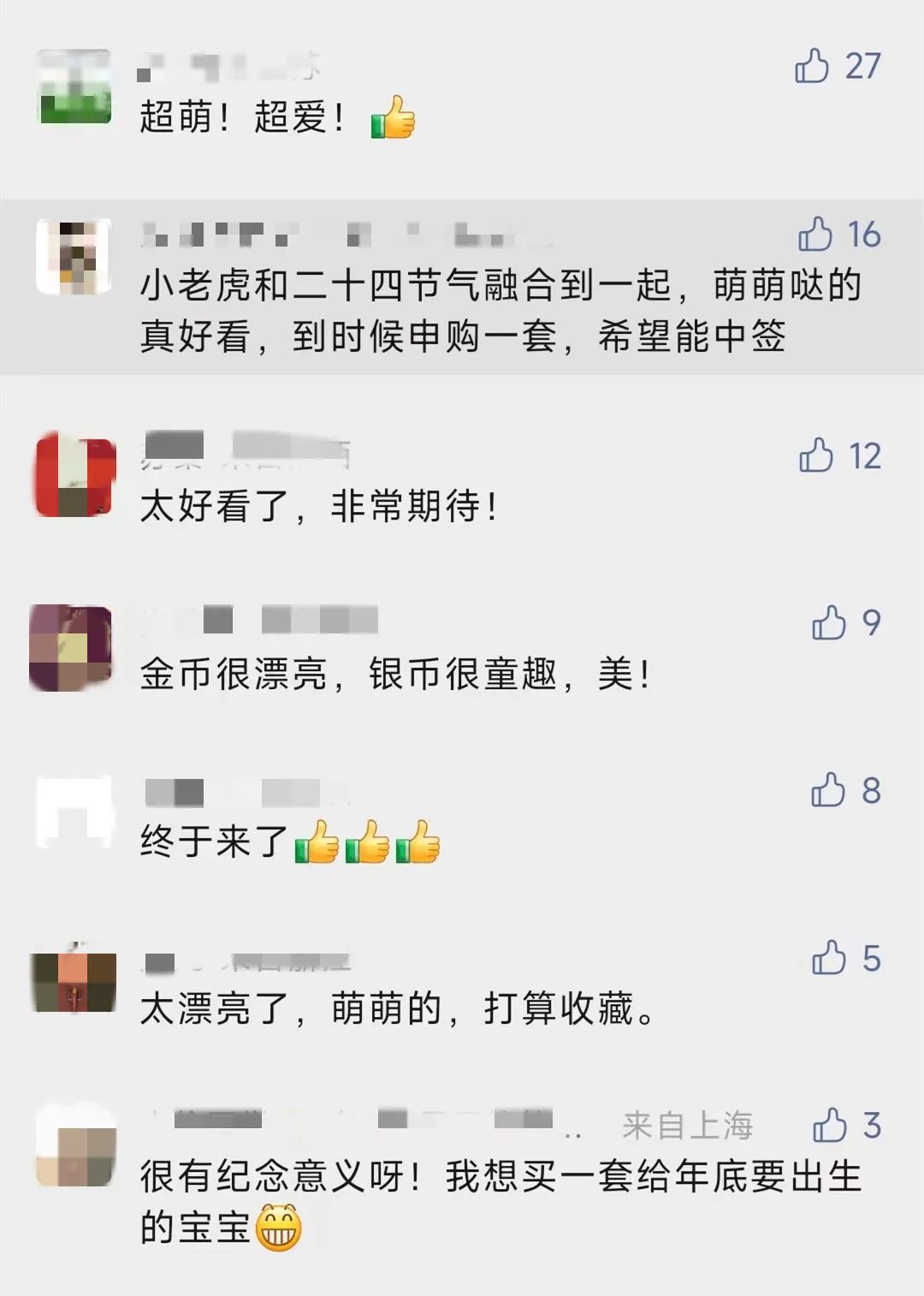 另外24枚银币分别代表了二十四节气,而且每枚银币上都有憨态可掬”的萌虎形象,这恰好对应了虎年,同时将萌虎与二十四节气的时令气候、民俗活动等结合在一起,这样一个充满童趣与生活气息的美好故事在纪念币上徐徐展开,娓娓道来。