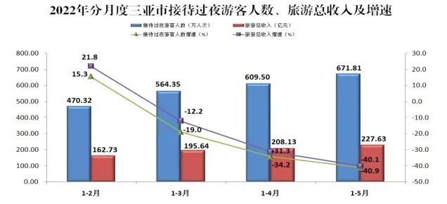 以三亚为例,今年1~5月,其接待过夜游客671.81万人次,同比下降40.9%。其中,过夜国内游客667.31万人次,同比下降41.0%;过夜入境游客4.50万人次,同比下降22.9%。