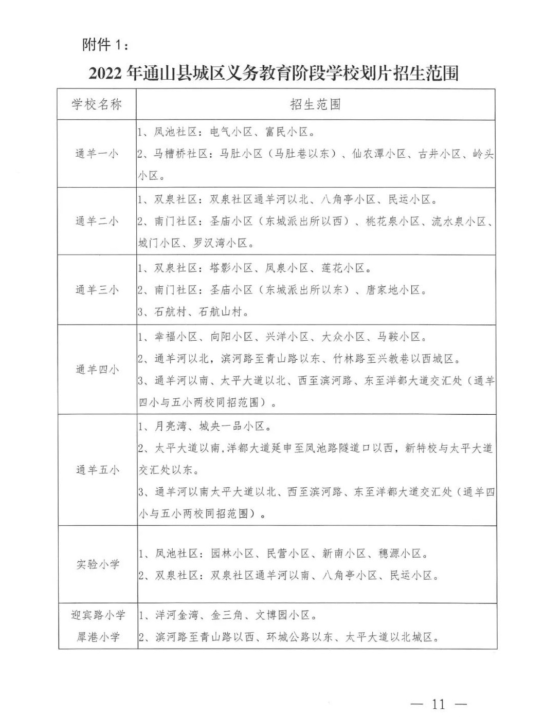 1、2022年通山县城区义务教育阶段学校划片招生范围