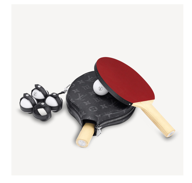 近日,LV跨界运动领域,在美国官网正式上线了一款配件单品“詹姆斯乒乓套装”(James Ping Pong Set),包括一副球拍及球拍套,四颗乒乓球及球套,加印花图案,售价2280美元。