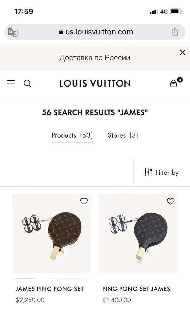 小编在LV中国官网上看到,确有一款“JAMES 乒乓套装”,包括一副球拍及球拍套,四颗乒乓球及球套,加印花图案,售价18300元。