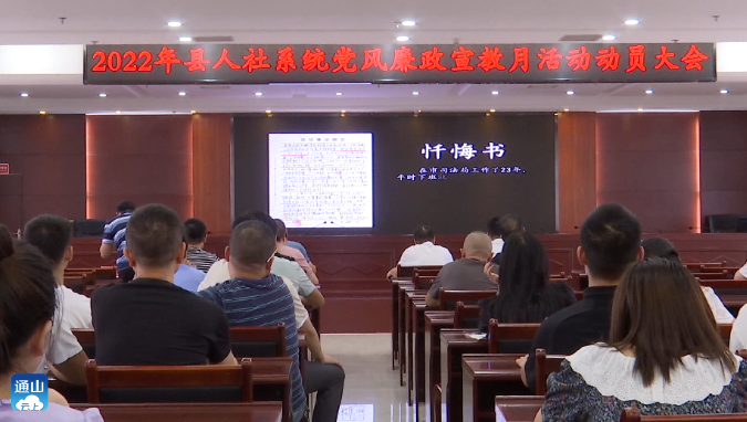 会议宣读了《2022年县人社系统党风廉政建设宣传教育月活动方案》。全体参会人员观看了警示教育片《圈套》。