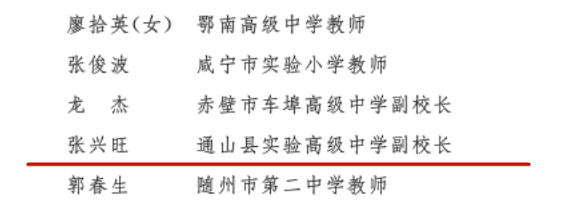 第四届“楚天园丁奖”获奖者名单(通山1人)